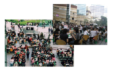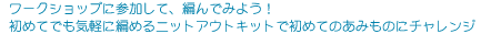 2005年10月15日、16日、東京六本木ヒルズアリーナにて、クロバー主催ニットアウトを開催いたしました。ニットカフェスタイルのワークショップでは、たくさんの方が手編みをたのしまれました。