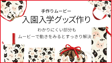 - 給食袋給食のときはカトラリーセット(スプーン、フォーク、箸など)を持っていくので、それを入れる袋です。カトラリーセットの大きさに合わせて作ります。