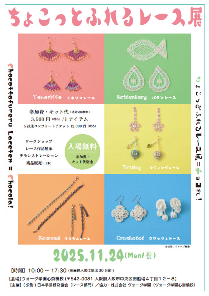 TOPイベント&ワークショップイベント2025年11/24 (公財)日本手芸普及協会(レース部門)主催「ちょこっとふれるレース展」開催!(大阪)