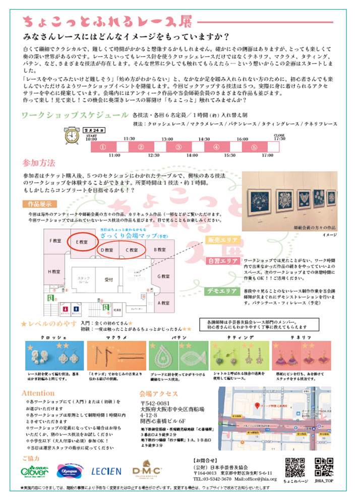 11/24 (公財)日本手芸普及協会(レース部門)主催「ちょこっとふれるレース展」開催!(大阪)