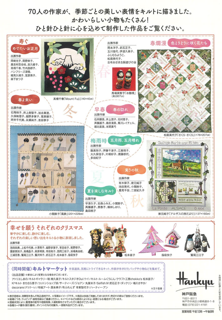 70人の作家が、季節ごとの美しい表情をキルトに描きました。かわいらしい小物もたくさん!ひと針ひと針に心を込めて制作した作品をご覧ください。