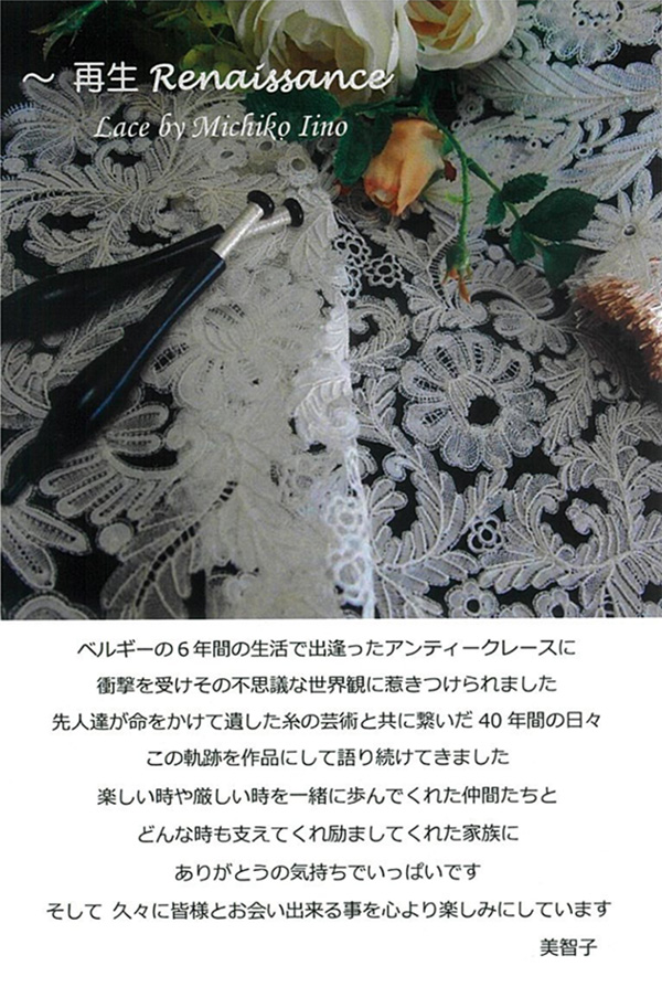 TOP/イベント&ワークショップ/イベント/2025年/11/12~16 「飯野美智子40周年記念レース展 ~再生Renaissance~」開催!(東京)