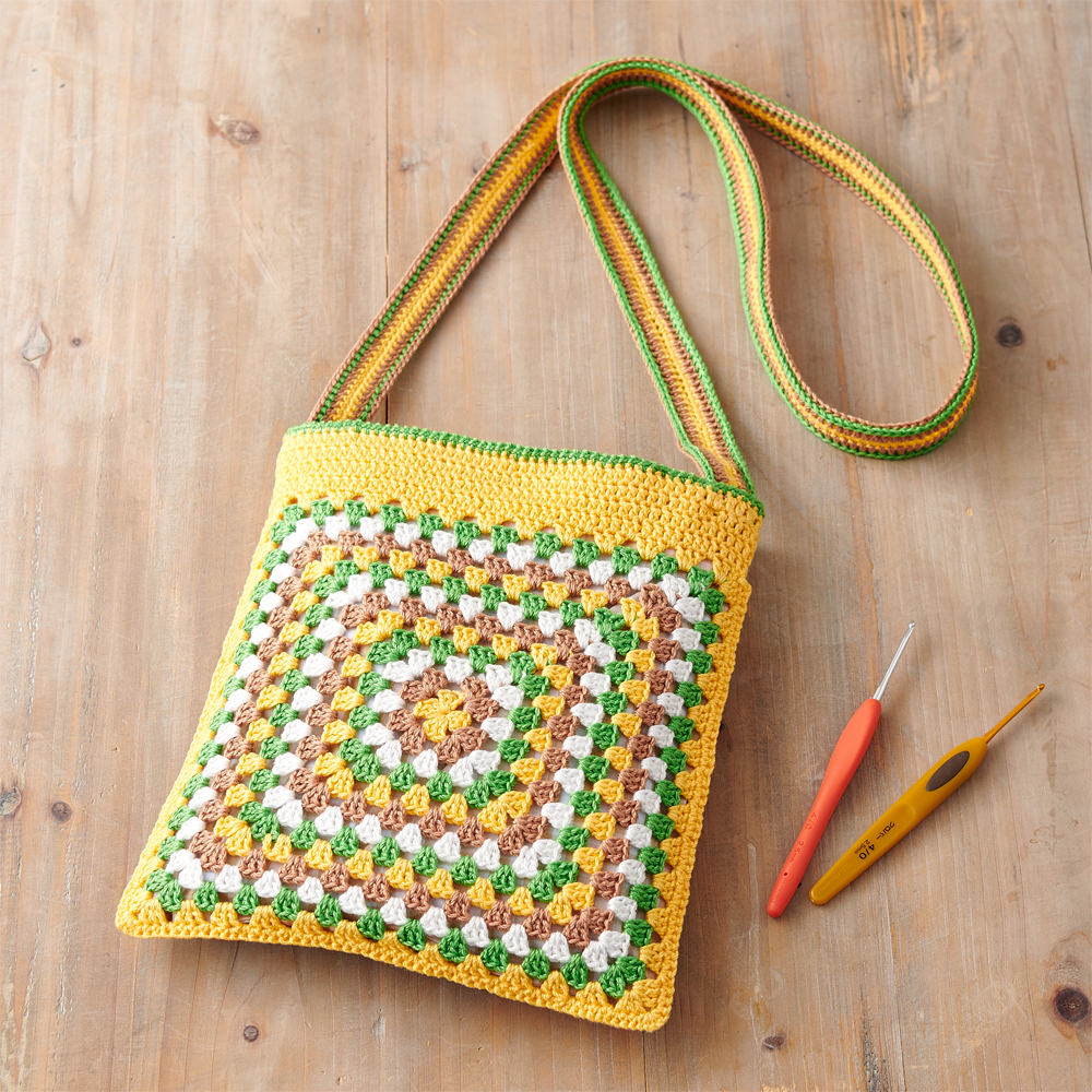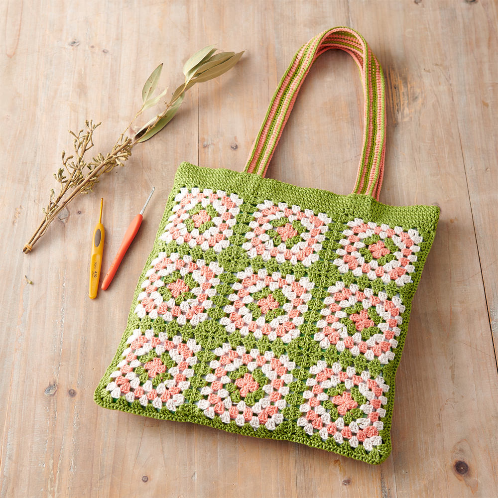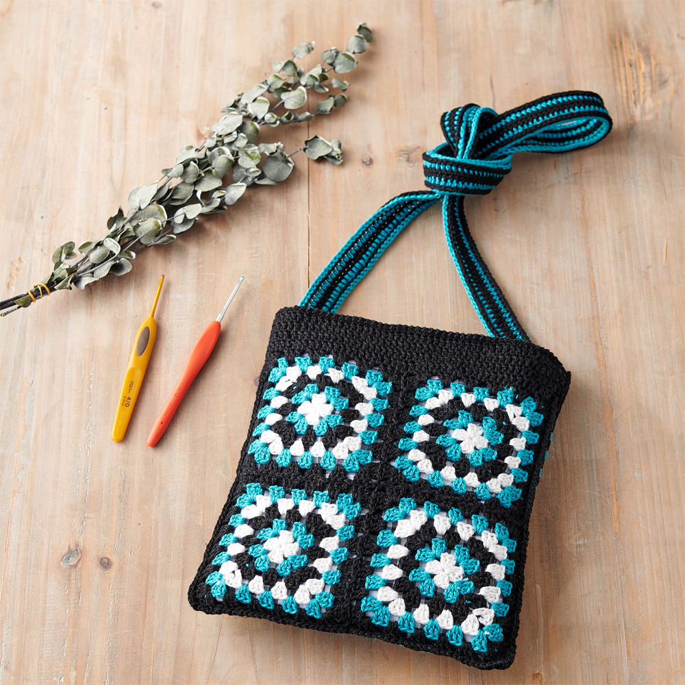 〇かぎ針アミュレで編む スクエアモチーフバッグ