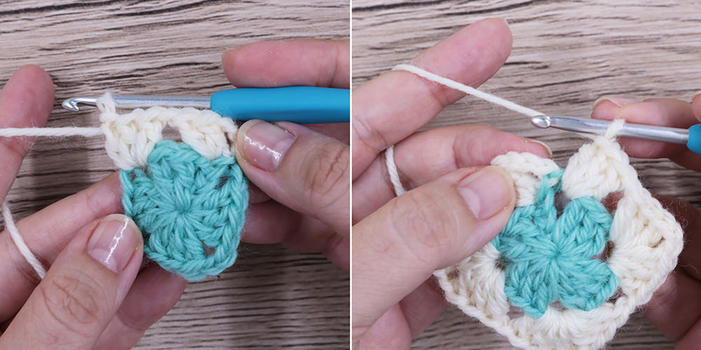 グラニースクエアは、かぎ針編みの基本の3つ(くさり編み・細編み・長編み)を覚えれば編めます。組み合わせを規則的に編んでいきます。
