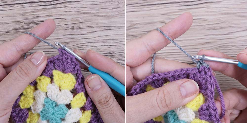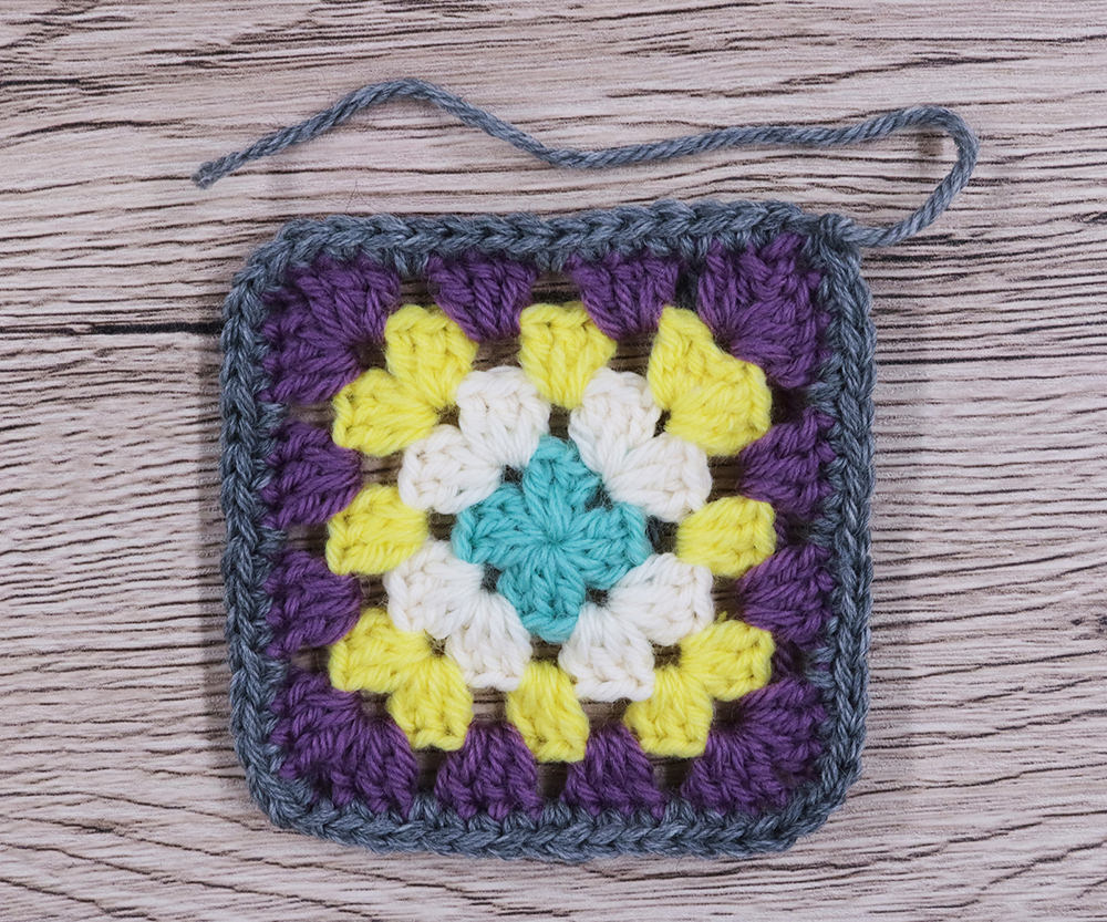 途中で糸が足りなくなった場合は、同じ色の糸を追加するか、アクセントとして別の色を使うのもおすすめです。グラニ―モチーフは色の組み合わせが自由なので、少ししか残っていない糸は1段目に使うなど工夫できます。