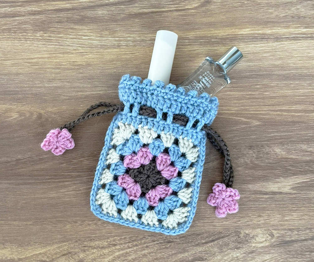 異なる色のグラニースクエアを組み合わせて、小物入れやバッグを作りましょう。
