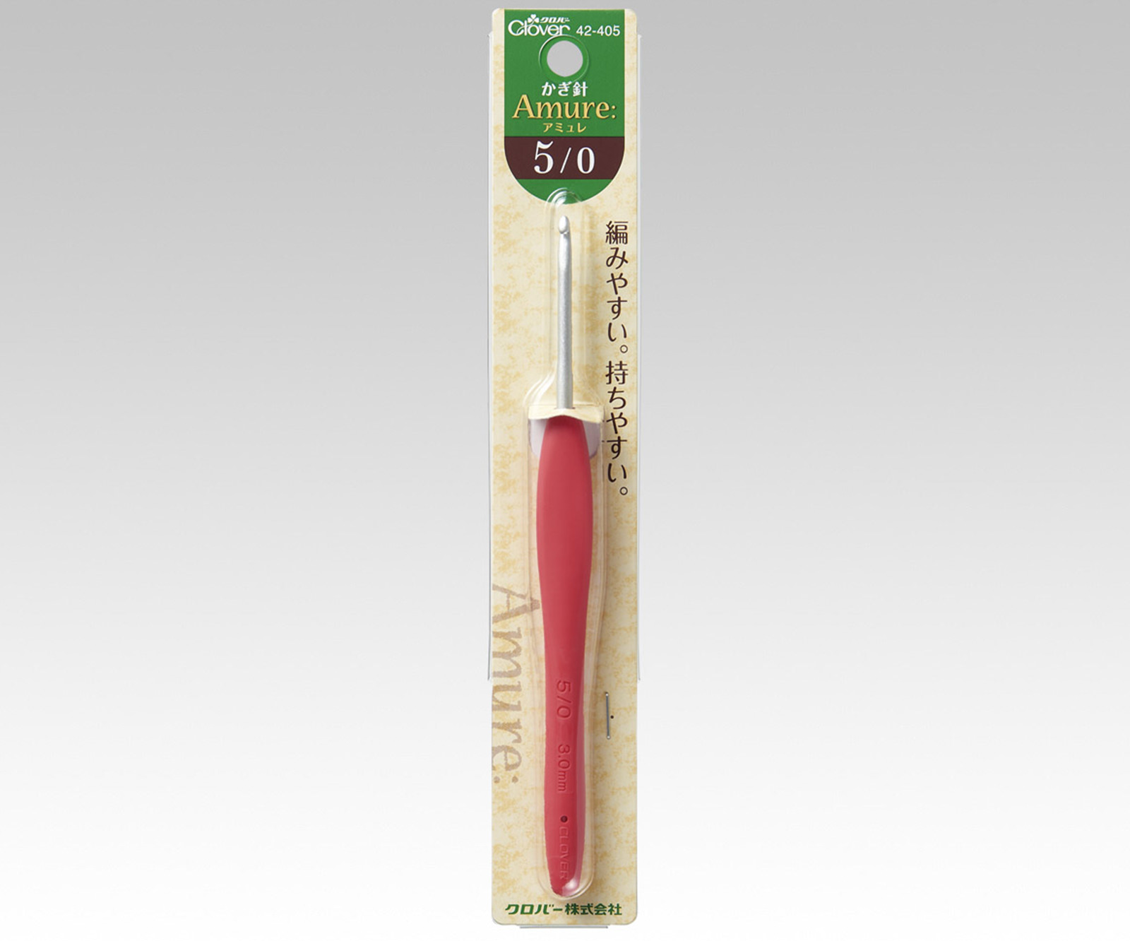 かぎ針「アミュレ」は、針先から糸がはずれにくく、目を拾ったり、糸を引き抜きやすい針先形状です。