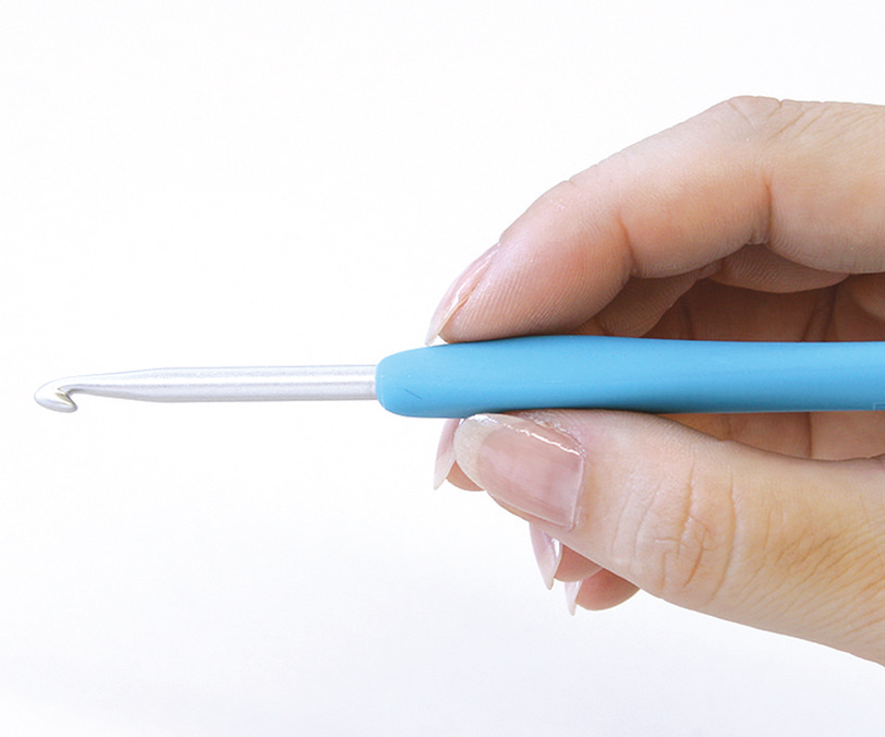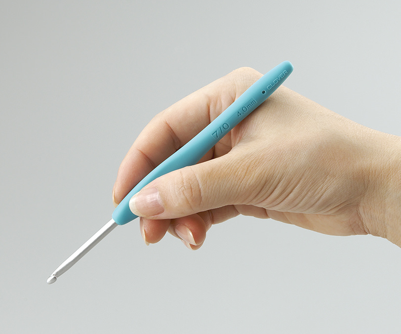 編みやすく指にやさしいかぎ針です。針先は、角度をやや浅くした形です。柄が薄くて持ちやすく、長時間の編み物にもおすすめです。