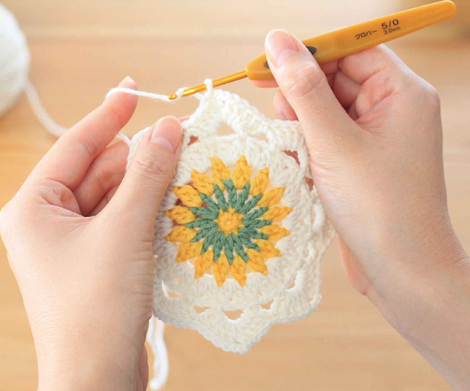 可愛くてシンプルなデザインが魅力のグラニースクエア!初心者さんも基本のくさり編み・細編み・長編みをマスターして編みましょう。