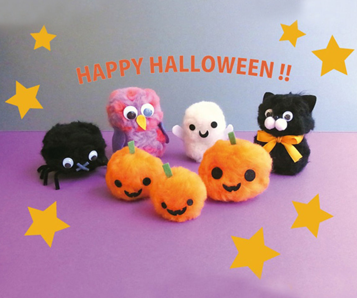 スーパーポンポンメーカーでハロウィンの飾りがいろいろ作れます。