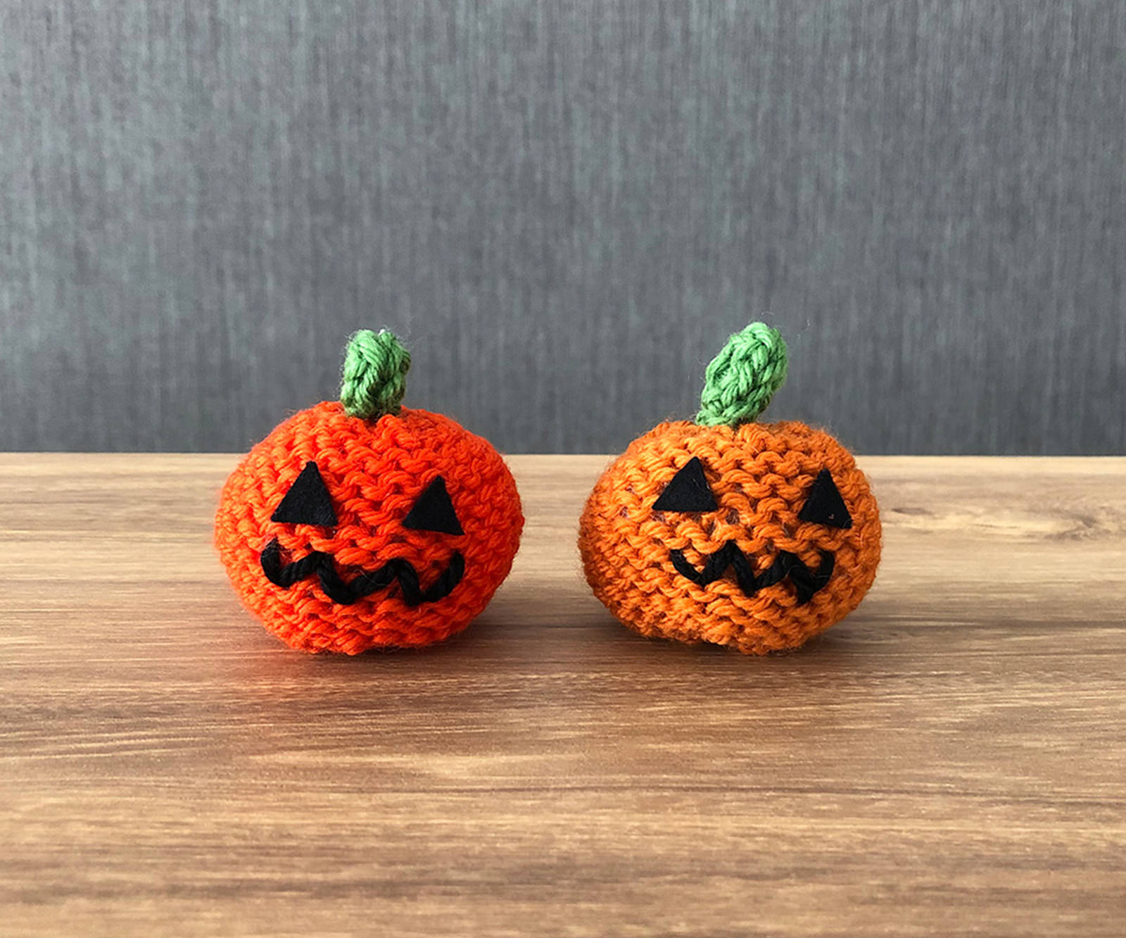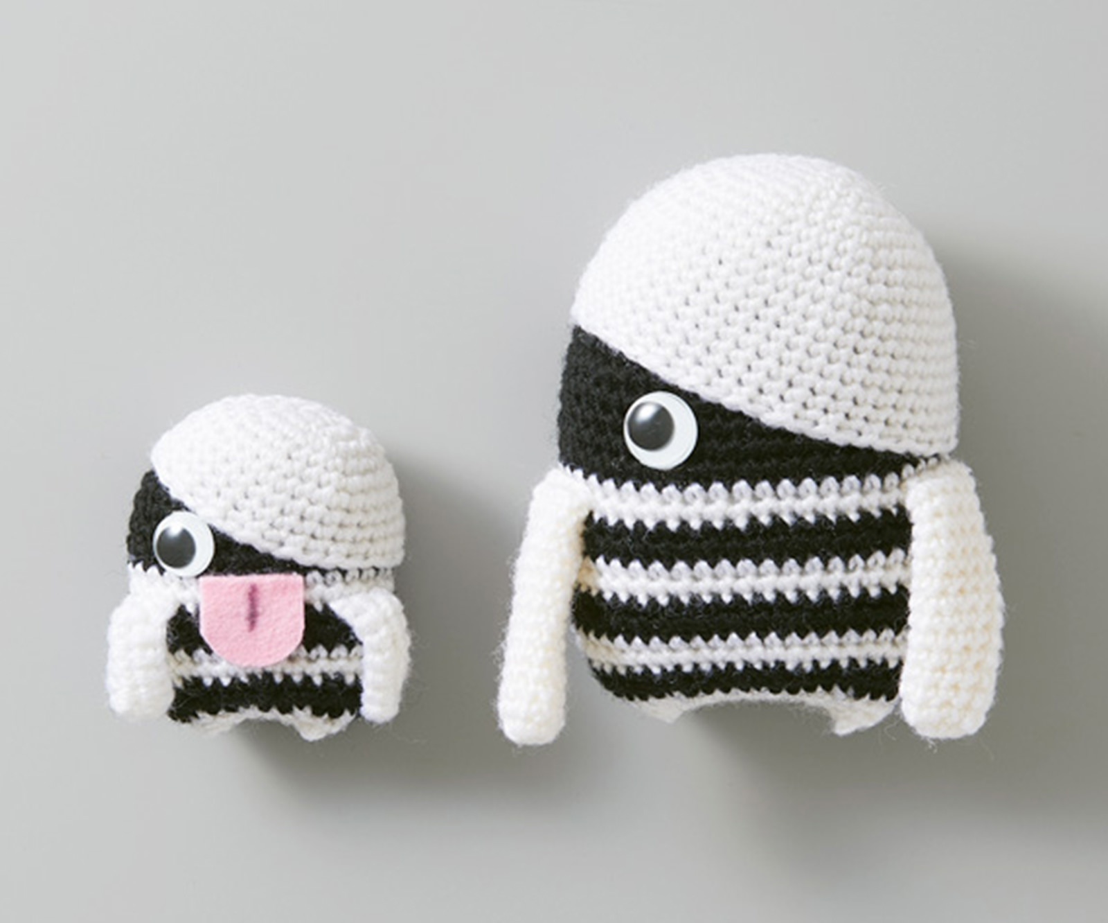 編み地に綿を入れてから、毛糸で引き締めるようにしてかぼちゃの形を作っているので、作り方は簡単です。かわいいミイラ男くんにも挑戦してください。