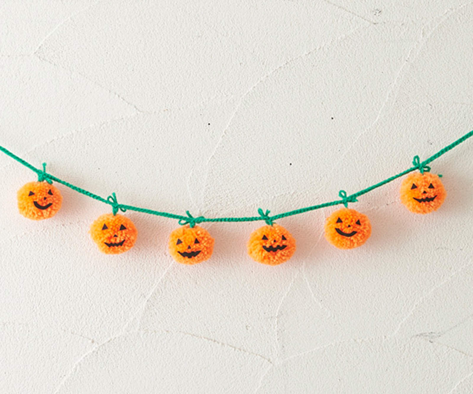 かぼちゃのガーランドを作れば、家の中が一気にお祭りムードになります。ポンポンはお子さんでも簡単に作れますので、みんな一緒に作るのもいいですね。棚や壁、飾ることでお部屋全体がハロウィンの雰囲気に包まれます。