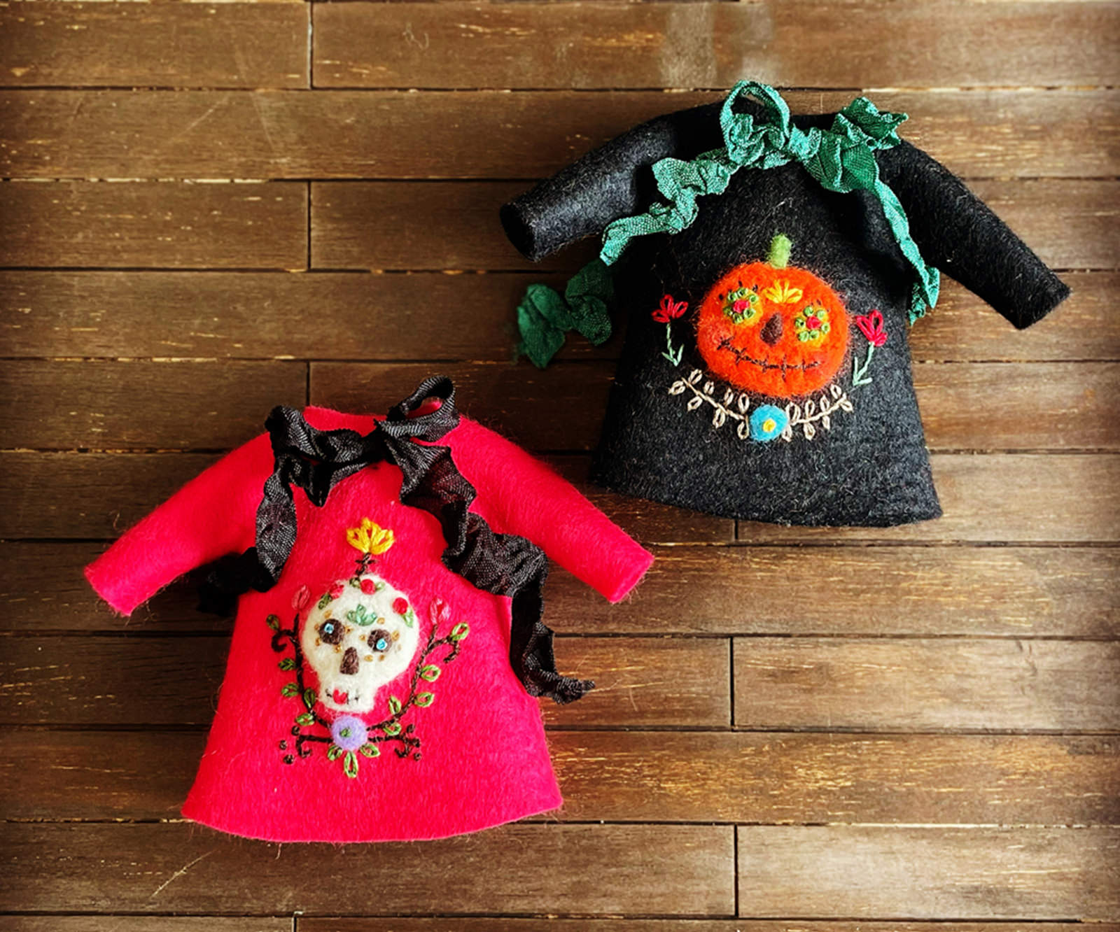 かぼちゃやかぼちゃカラーのを衣装を集めました。ボンドを使って簡単に作ることができるので、初心者さんにもおすすめです。ハロウィンの特別な一日を楽しむために、思い切って挑戦してみてください。