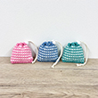 まんまるな形が可愛い巾着です。巾着袋の外側に、大きさの違う、ちくちくヨーヨープレート<L>やちくちくヨーヨープレート<S>、ちくちくヨーヨープレート<SS>で作ったヨーヨーをつないで付けました。ヨーヨーを巾着袋の側面に待針でとめながらランダム配置するのも楽しいですよ。