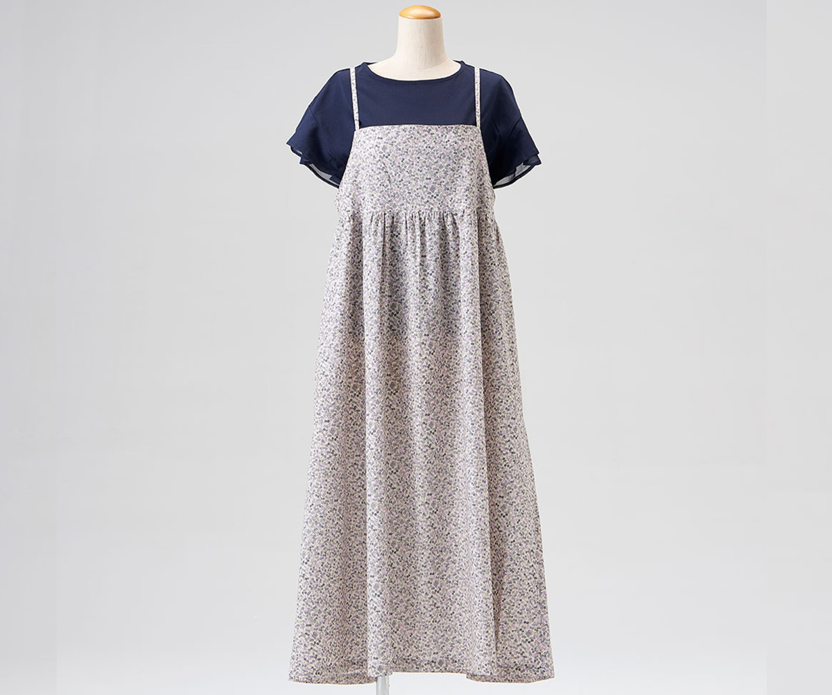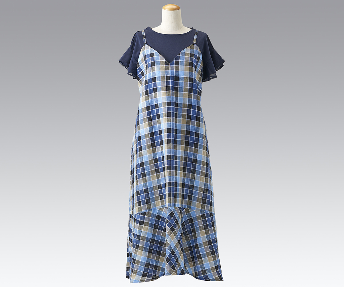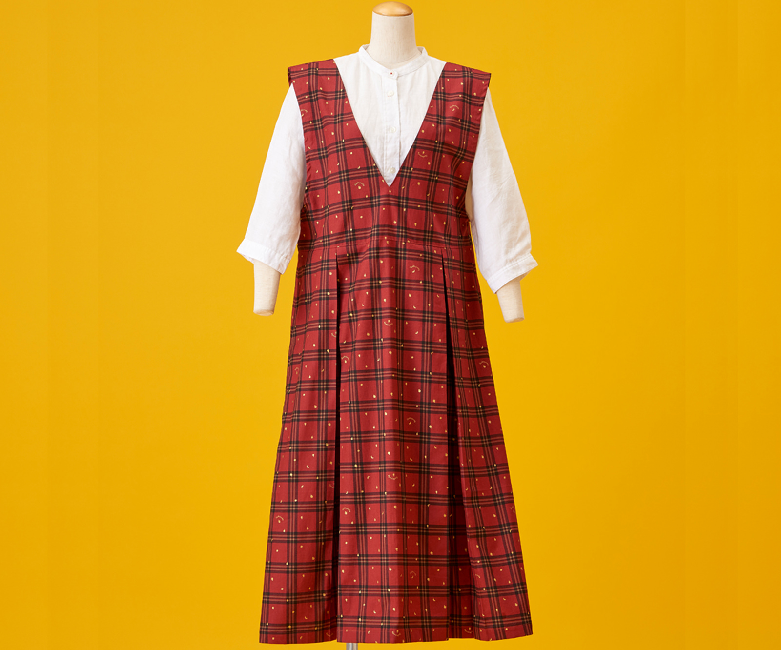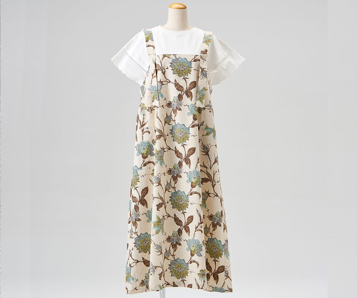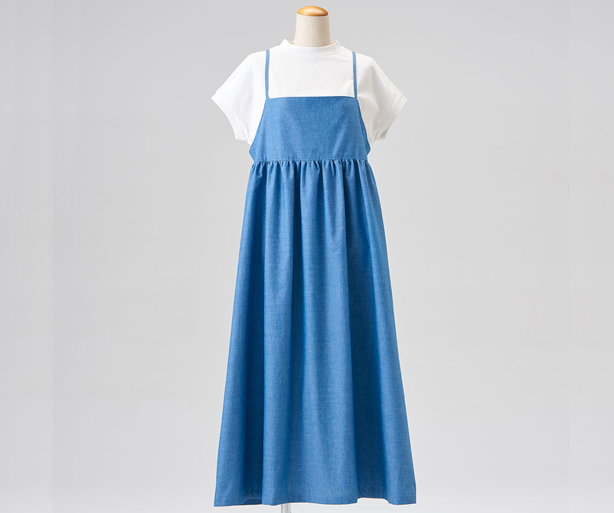 エプロンドレス風は、カジュアルとエレガントが両立したデザインです。