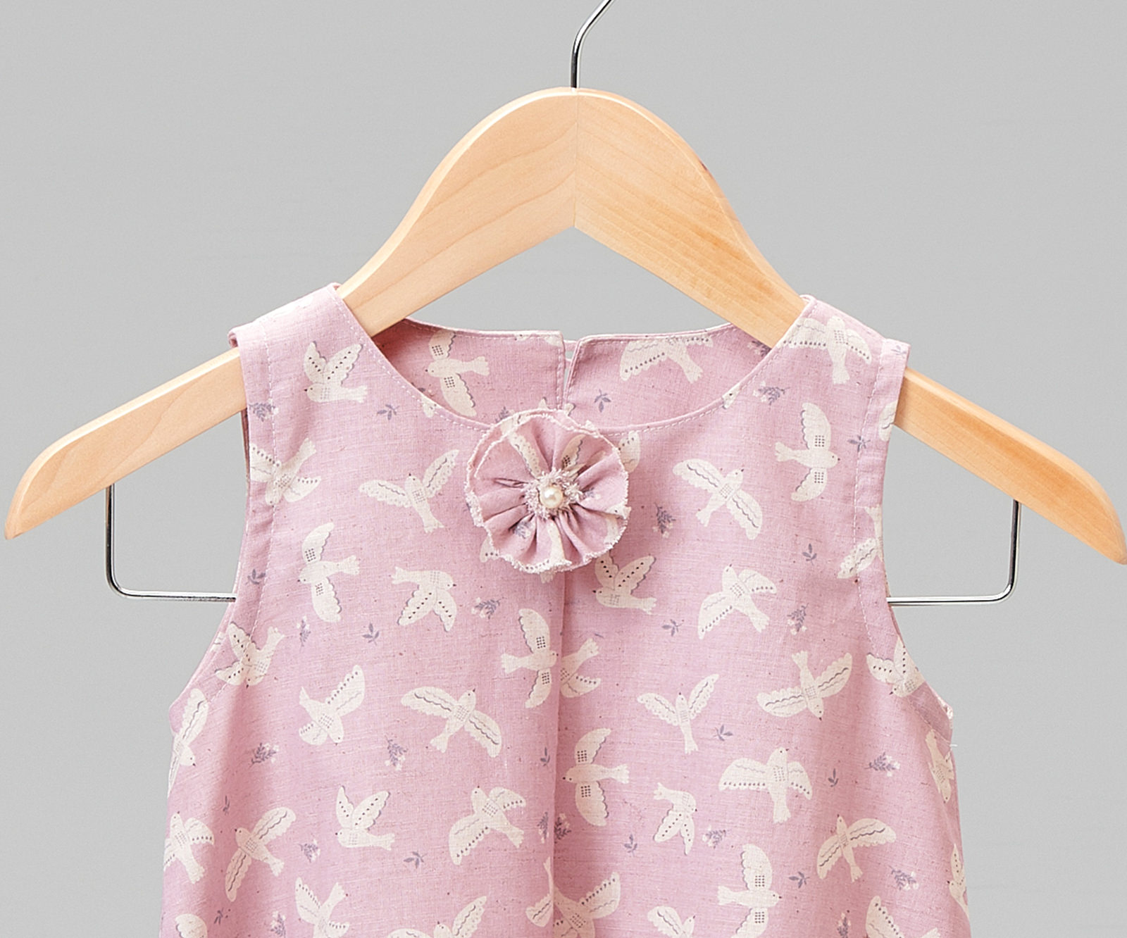 ソーイング初心者さんの記念すべき一着目におすすめです(*^^*) さっと着こなせる、かぶって着るタイプのワンピースです。首回りをコサージュを作ってとめることもできます。