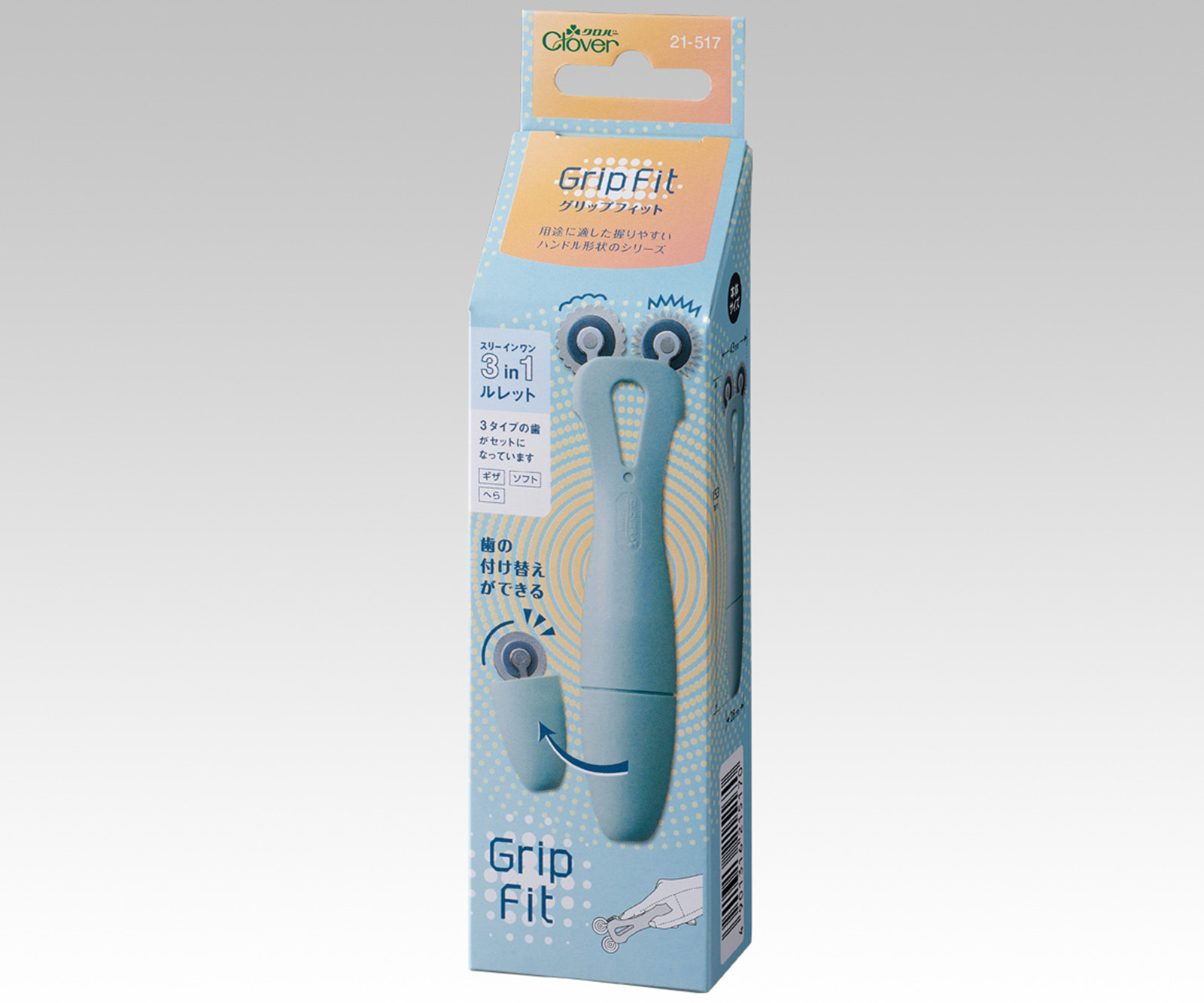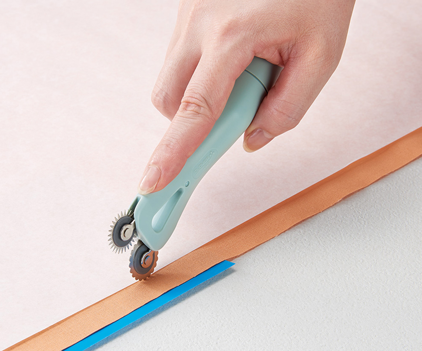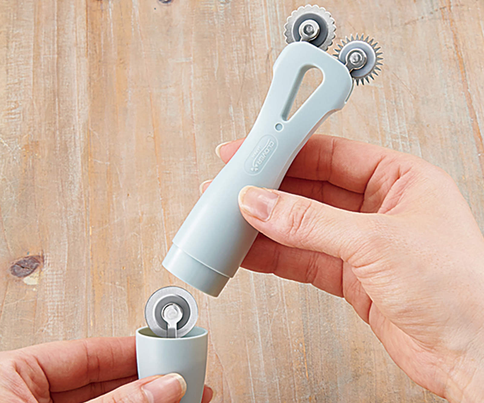 ギザ歯、丸歯、へらと3タイプの歯がセットになったルレットです。クルッと回すだけで、素早く歯の種類を変えることができます。