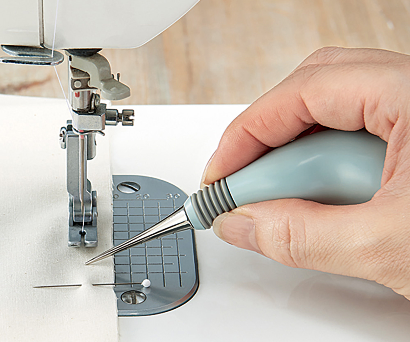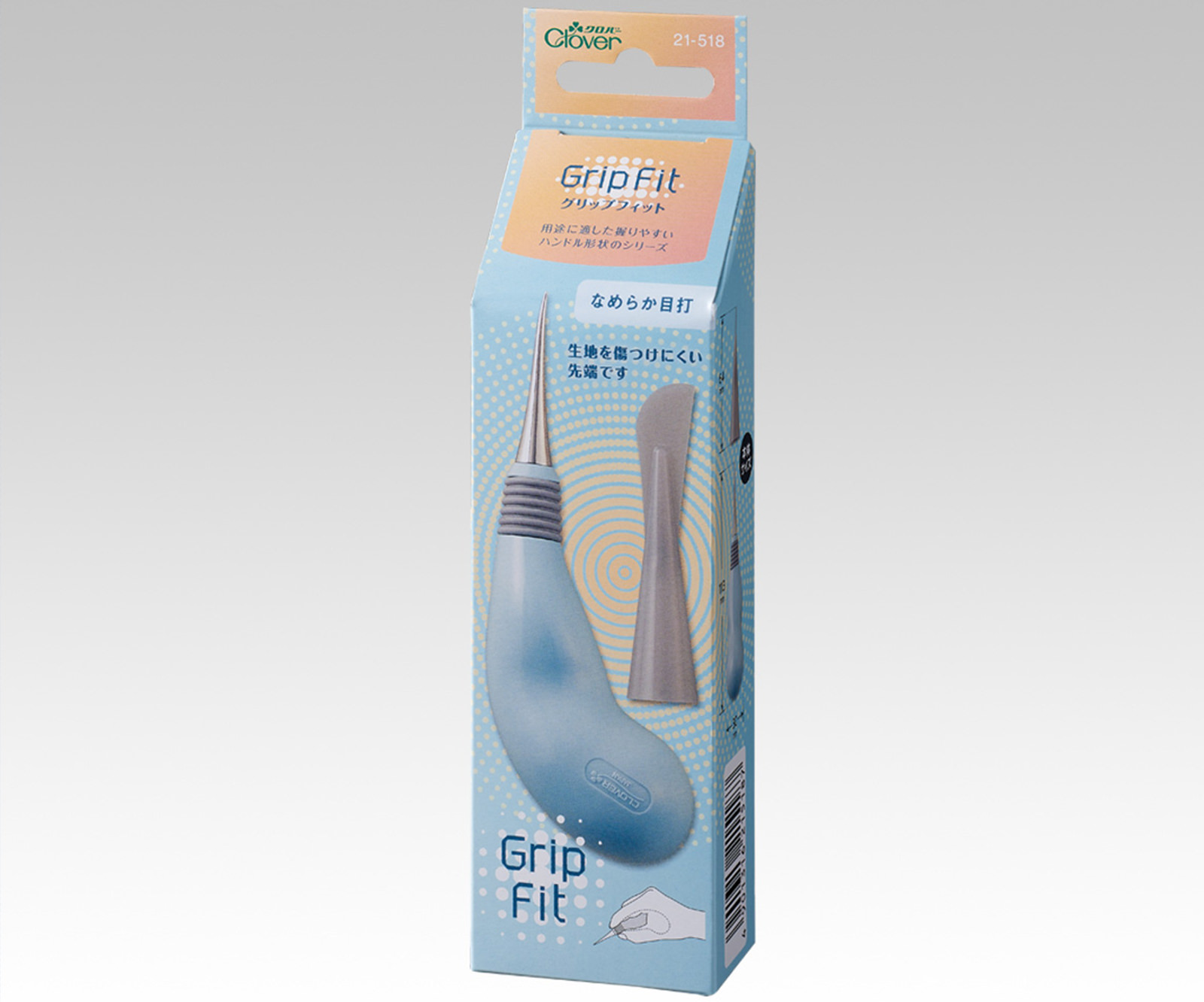 先端が丸くなめらかになっていて、糸割れを起こしにくい目打です。キャップはへらとしても使えます。