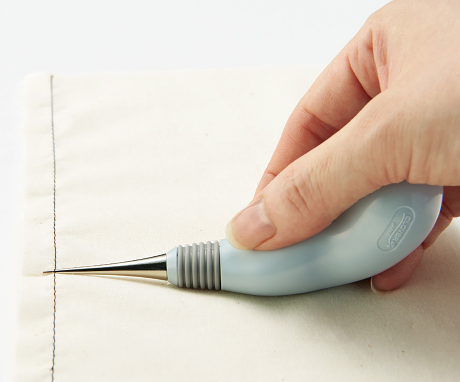 型紙のしるしを布に写す時にソフトルレットと一緒に使います。色は、グレー、白、青、黄、ピンクの5種類です。