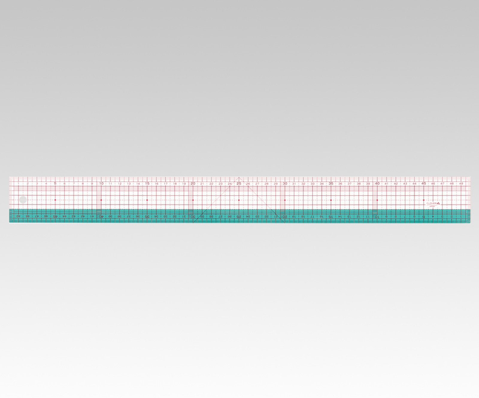 方眼定規はハトロン紙や布に製図する時に使います。グリーンゾーンは濃い布の上でも、目盛りが読み取れます。