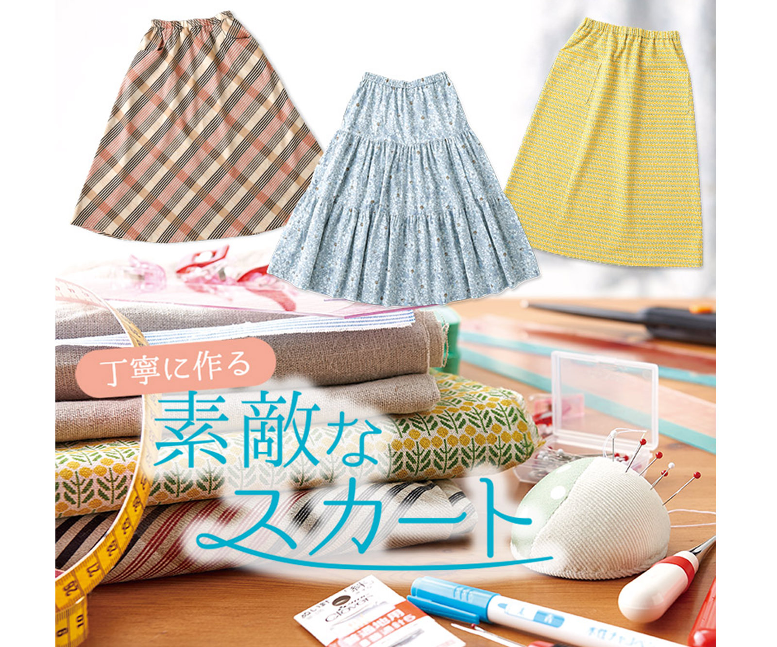 「素敵なスカート」は、セミフレアースカート・ティアードスカート・ゴアードスカートのレシピがあります。細見えの素敵なスカートを作りましょう!