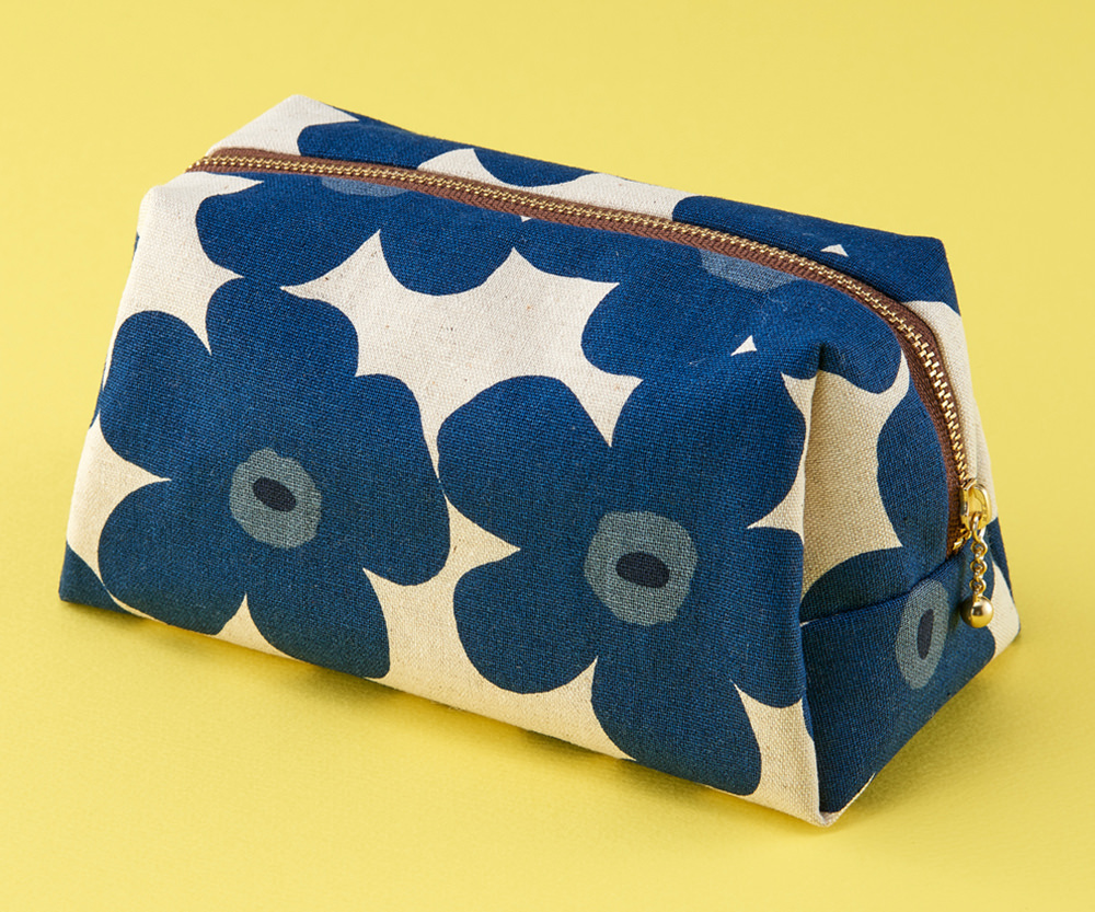 たっぷり入って、使いやすい王道のファスナーポーチ。裏地を付ければ、開けた瞬間から可愛くて見せたくなる仕上がりです。表布と裏布の組み合わせを考えるのも楽しいポイントです。接着芯を貼ると、形がきれいにキープできます。