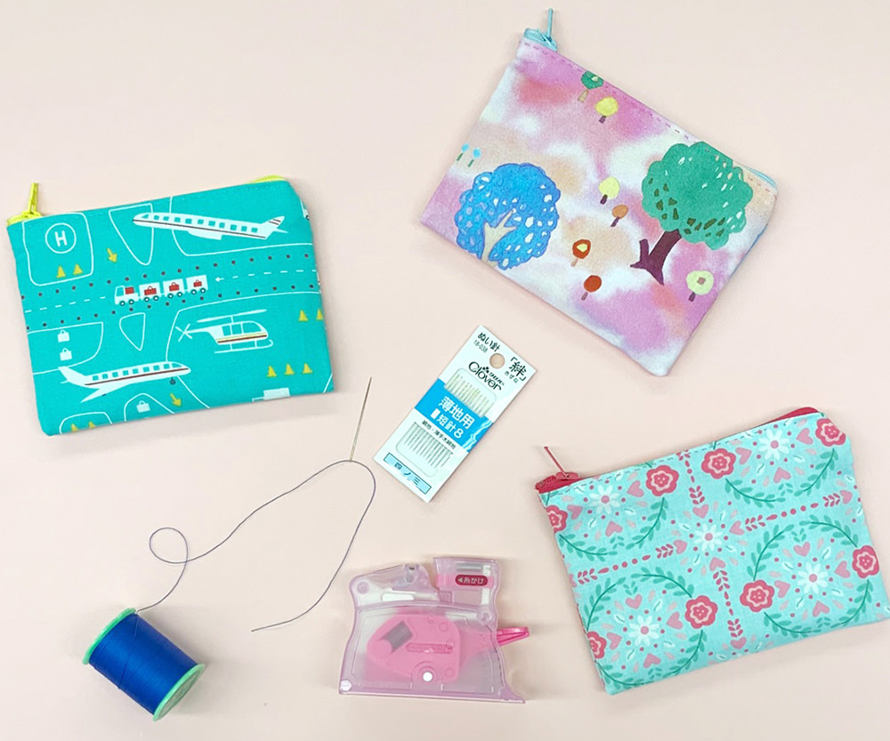 ポーチは手縫いでも作れますが、ミシンを使うとスピーディに完成します。