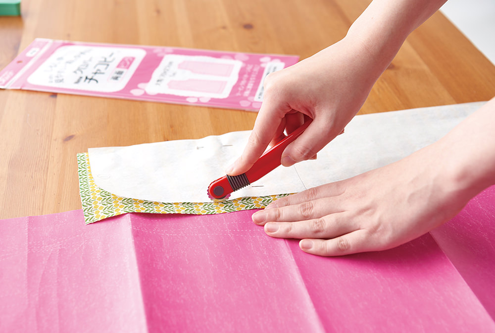 1. 型紙の製図と布を裁断、しるしを付ける