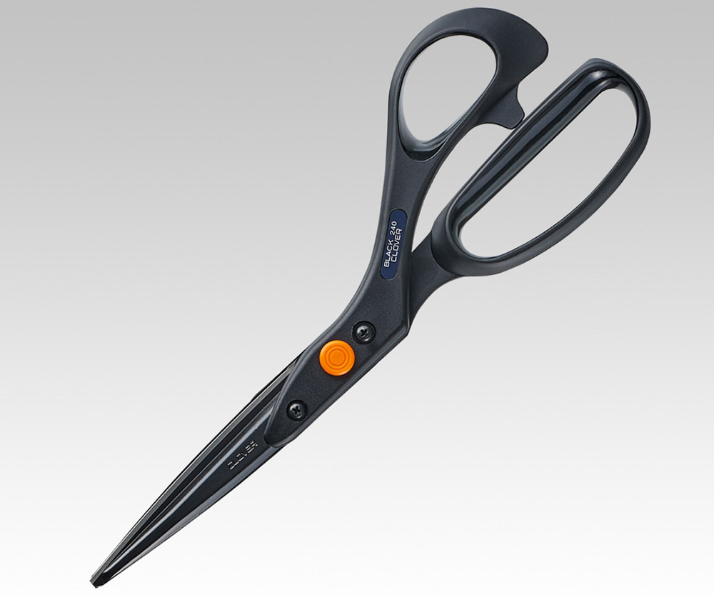 きれいに裁断するための布切はさみ。ブラックシリーズは軽くて耐久性が良いです。カットワークはさみは細かい部分の裁断に便利です。