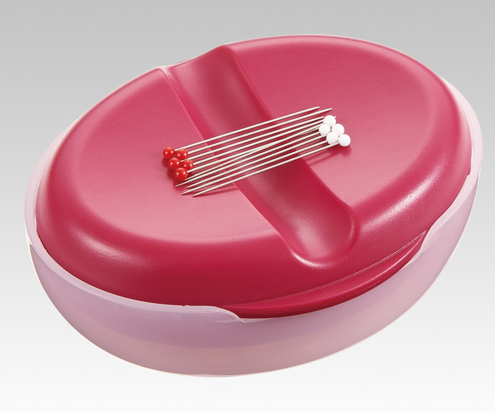 色分けピンクッションは2色に分かれているので、針の種類に応じて刺す場所を使い分けられます。マグネットピンクッションは、磁力で針が同じ向きに並んでくっつきます。