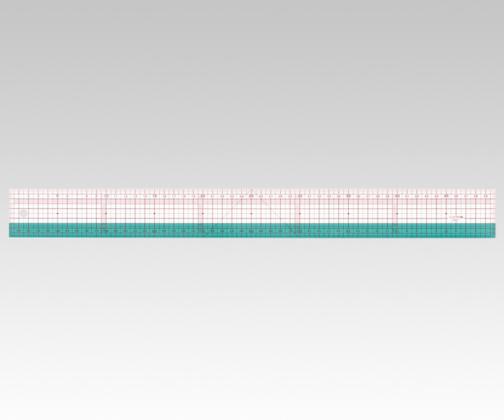 グリーンゾーンで濃い布の上でも、目盛りが読み取れます。縫いしろ付けに利用する平行線が正確に描けます。
