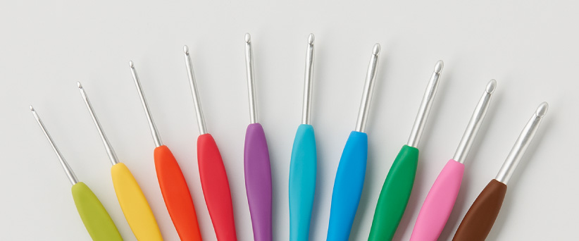 しっかり編める針先と指にフィットするグリップ付きで、初心者の方にもおすすめのかぎ針「アミュレ」。針先から糸がはずれにくく、目を拾ったり、糸を引き抜きやすい針先形状で、かぎ針の基本動作をかんたんに確実に行えます。立体的なカーブで作られたグリップはしっかり握れるので余分な力をかけずに編むことができます。