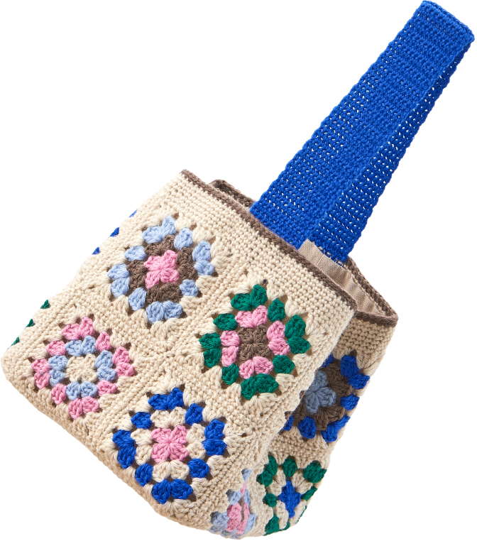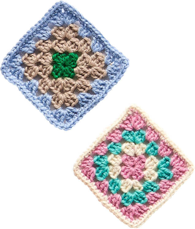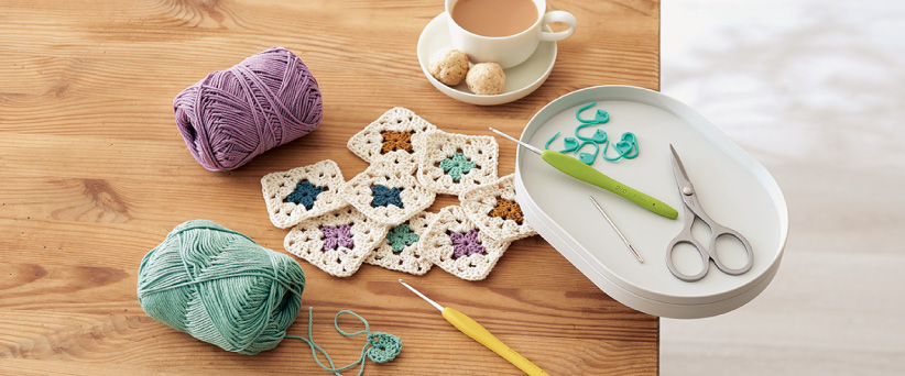 まずはコースターくらいの小さなサイズの作品を完成させてみて。そのまま大きく編み進めたり、小さなモチーフをつなげてバッグやブランケットにしても楽しい。