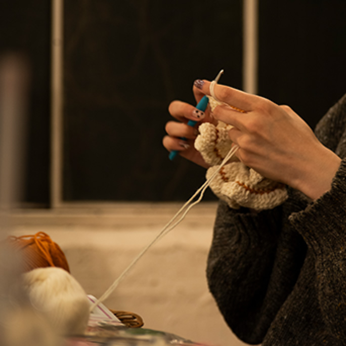 会場には、かぎ針編みをやってみたかったという方や、一度自分でやってみたけれどうまくいかなかったという方も。最初は慣れない作業に少し苦戦しても、編み進めるうちにどんどん上達して、かわいいシュシュを完成させることができました。最後には「できた!」「かわいい!」と盛り上がり、編み物の楽しさを共有することができました。
