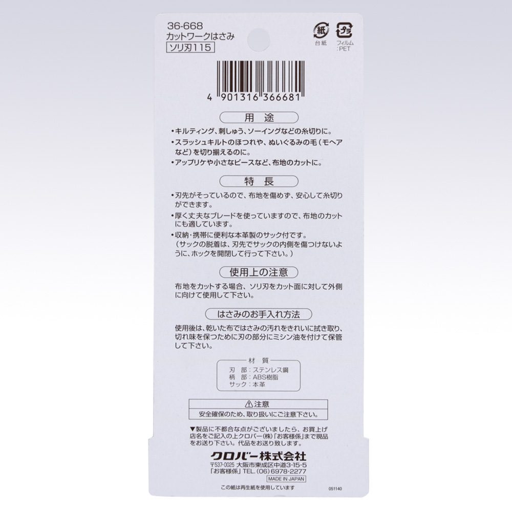 スラッシュキルトやアップリケなど、細かいカットワークに最適です。重ねた布もカットできる丈夫なステンレス鋼の刃です。