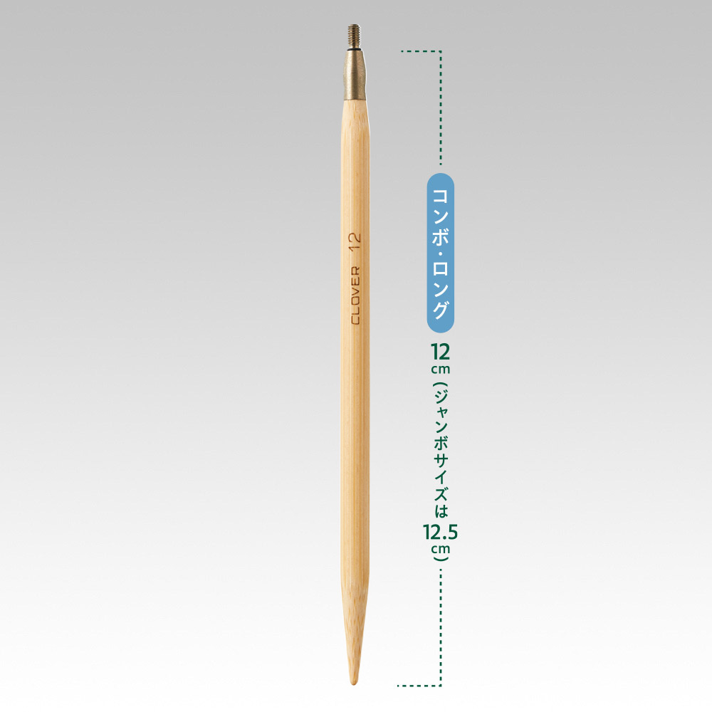 - 60通り(針12サイズ×コード5サイズ)の組み合わせが可能な、付け替え式セット「匠」輪針セット〈コンボ〉のロングタイプです。針の長さが12㎝(ジャンボサイズは12.5㎝)になって、セーターなどの大きい作品を編む時に、おすすめです。