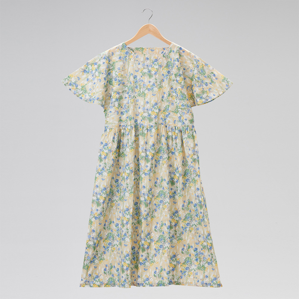 - かぶって着るワンピース フレアースリーブワンピース(大人・子ども) の作り方です。