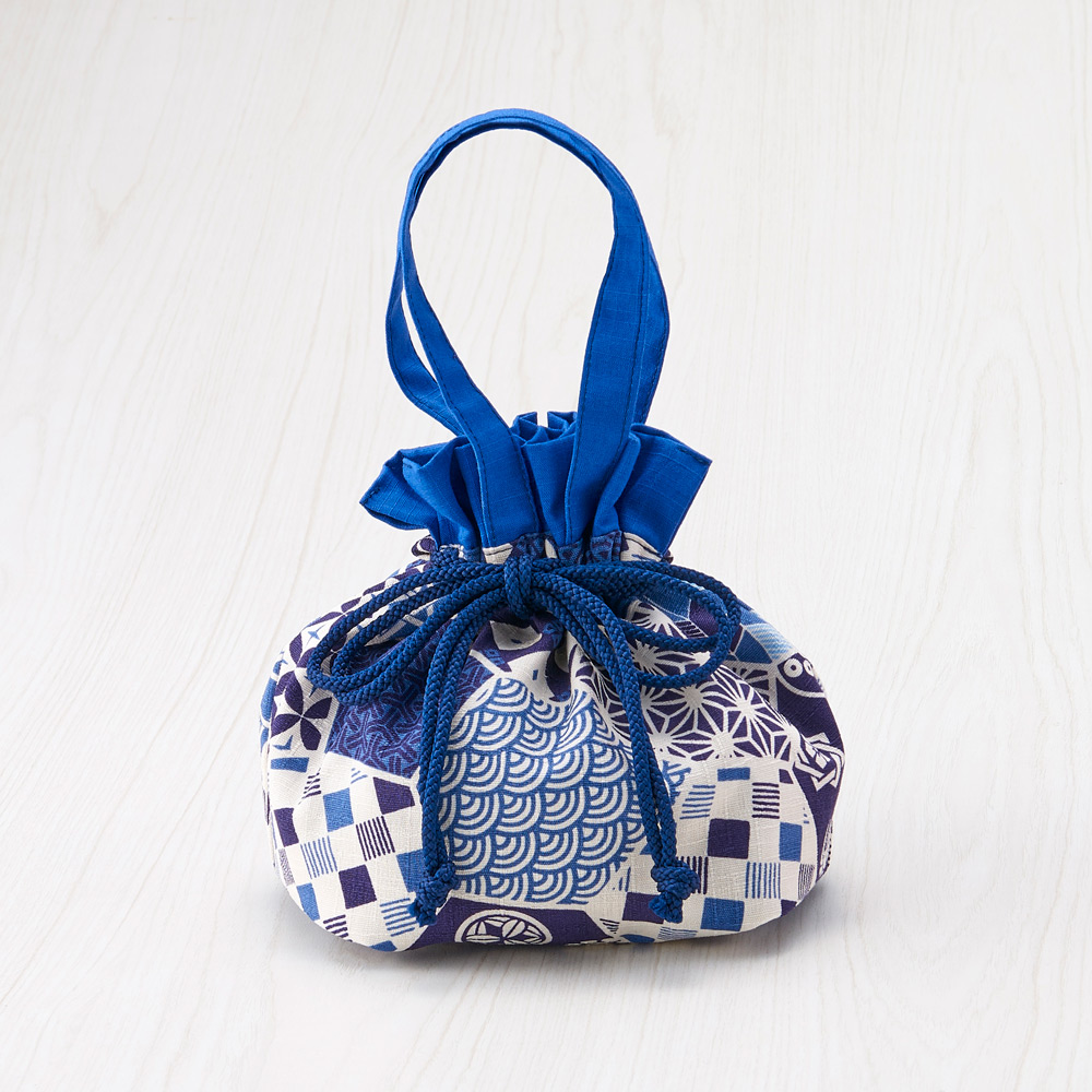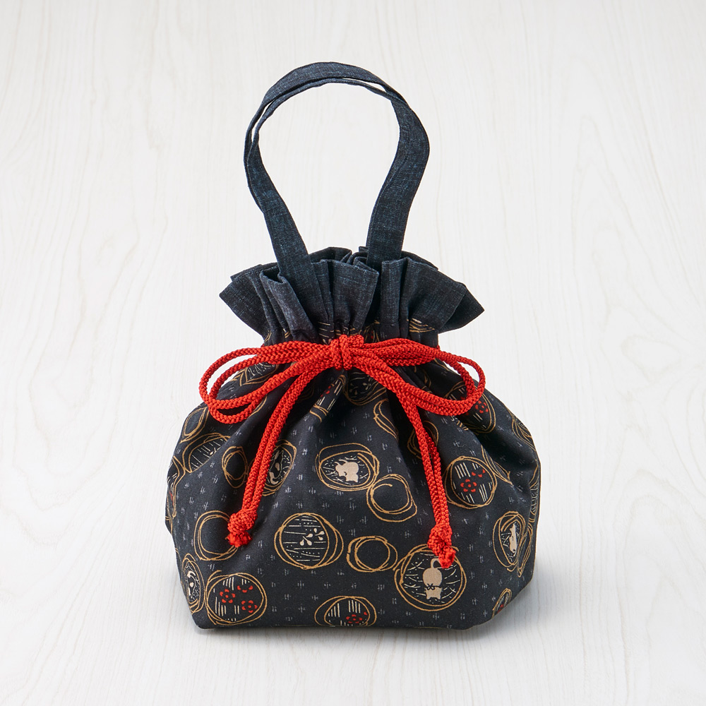 - 浴衣や甚平に合わせて持ちたい巾着バッグ。子ども用の小さめサイズと大人用のサイズをご用意しました。