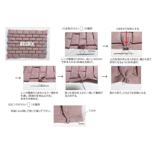 ・「ラティススモッキング『BRICK /レンガ柄』刺し方」