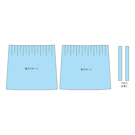 前スカートと後ろスカートのパーツを作って脇で縫うだけで、素敵なスカートが作れます。