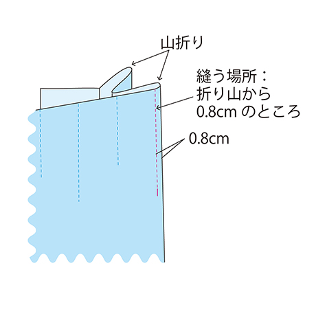 折山から0.2cmのところを一周縫います。 縫い終わりは縫い始めに重ねます。
