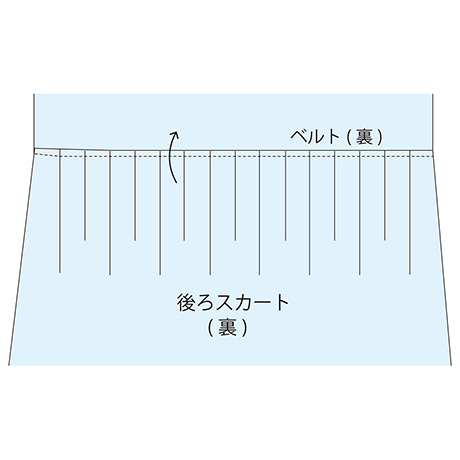 ベルト布とスカートを縫い合わせます。縫い始めと縫い終わりは返し縫いをします。