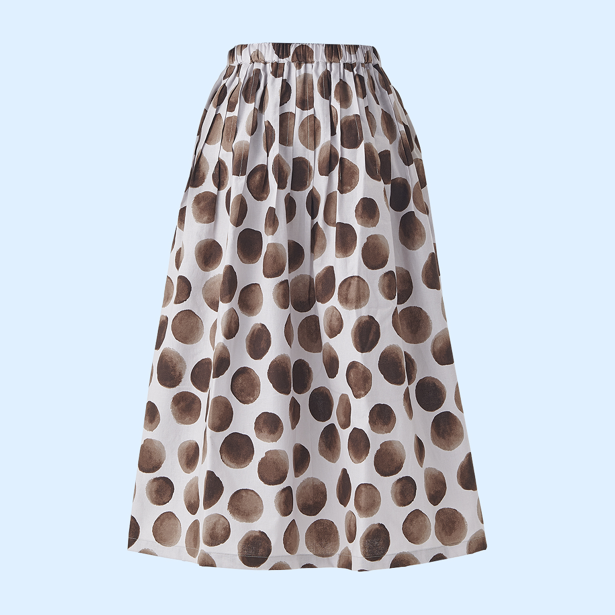 腰回りにピンタックを入れることで、もたつきがちな腰回りがすっきりし、細見えするシンプルなスカートです。