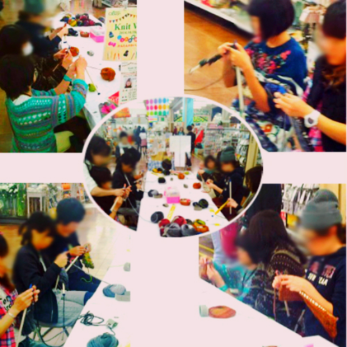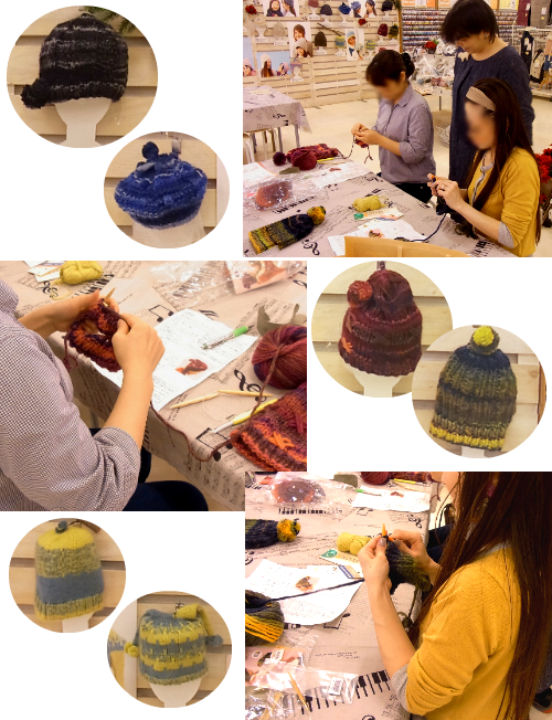 こちらは、棒針で編むザクザクニット帽のワークショップ。初心者や手あみはまったく