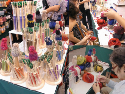 ミニキャップチャームのワークショップでは、新製品ジャンボかぎ針「アミュレ」