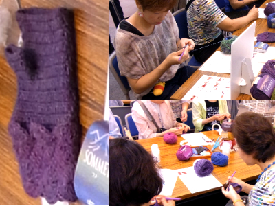 アフガンクロシェの講習も。みなさま、とっても熱心に編んでらっしゃいました。