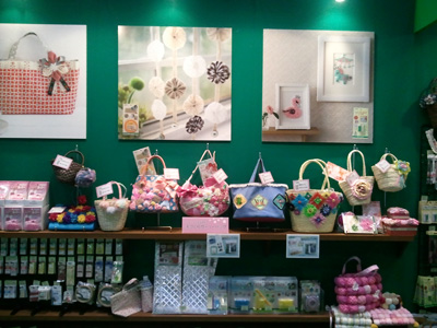 手芸用品を使ったガーリーバッグを展示。いくつあっても楽しいバッグたちです♪