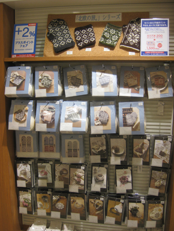 そう、「ちいさなてしごと 北欧の旅」の手あみ作品も横山先生に作っていただきました。サンイデーさんでは、ずらりと品揃えしていただいています。