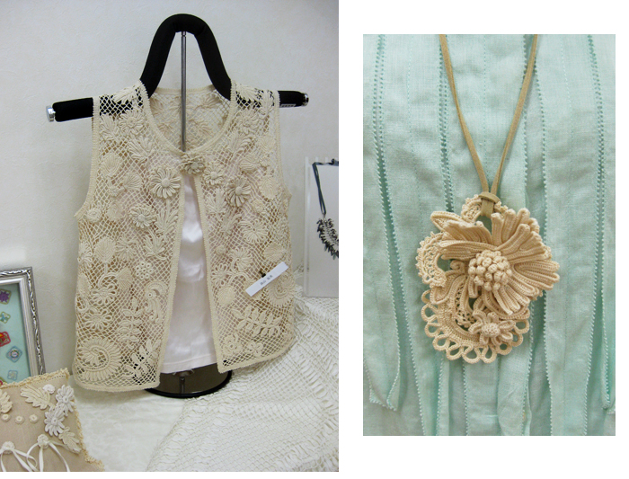 アイリッシュクロッシェレースの作品も美しい。ペンダントもとっても素敵です!!
