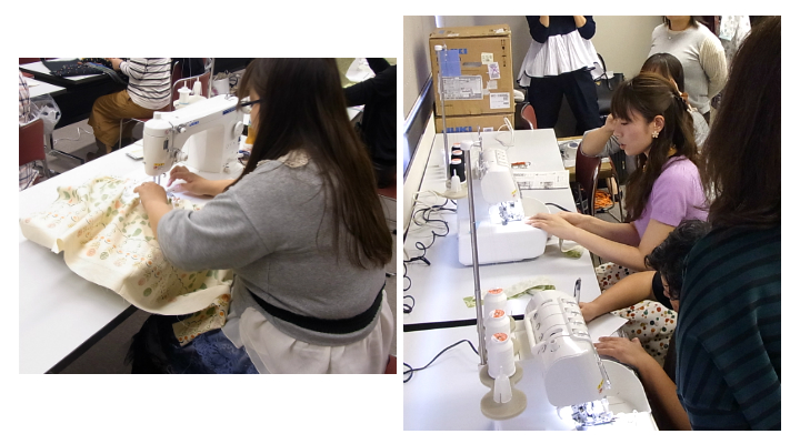 今回、ミシンはJUKI販売さんの職業用ミシンとロックミシンが用意されました。ロックミシンは使ったことがない